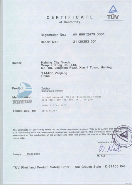 TUV EN533 2005years