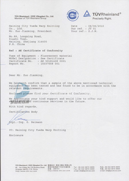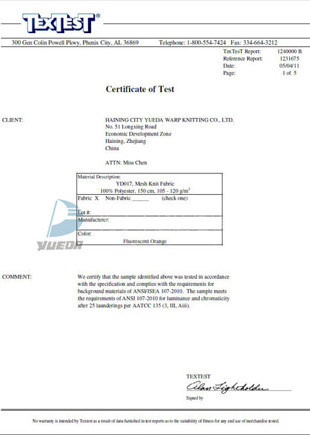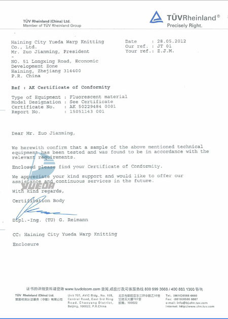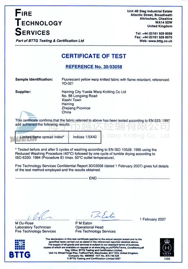 BTTG抗阻燃证书